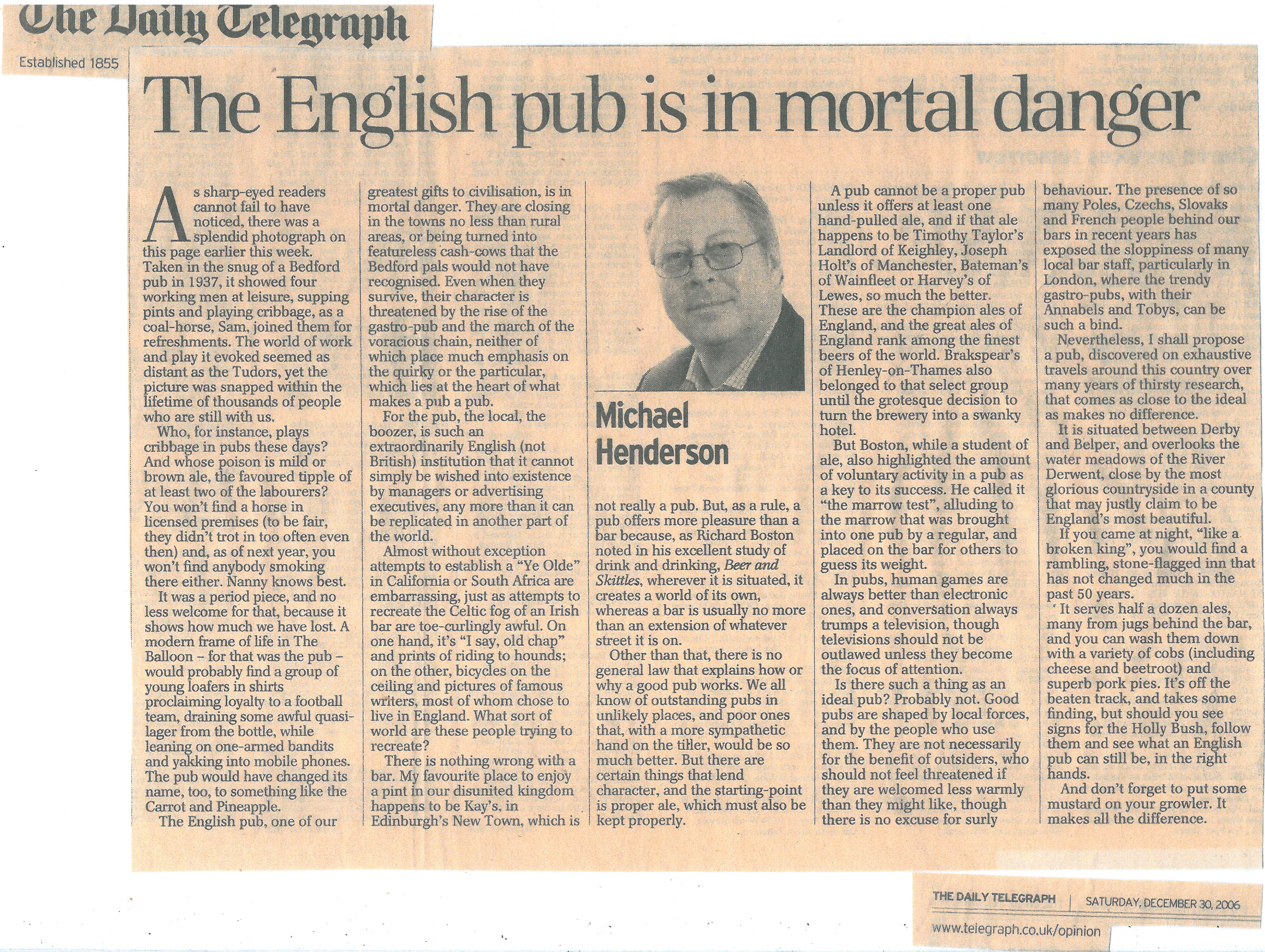 The Holly Bush Inn has been featured in an article written for 'The Daily Telegraph' on the life span of traditional English pubs.